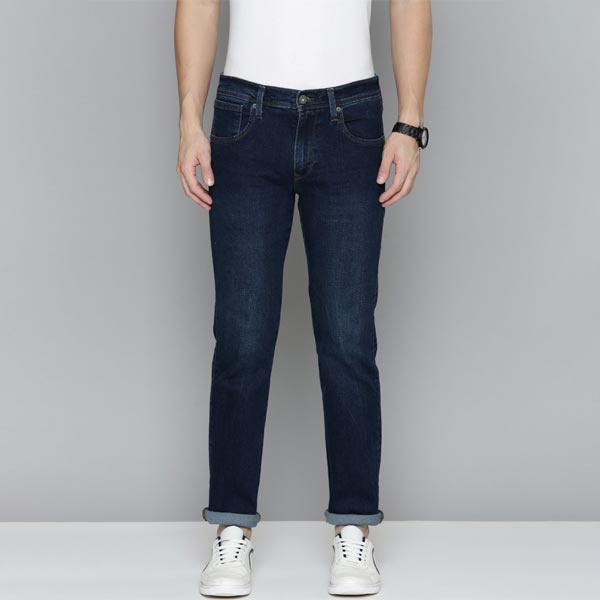• Dark shade, light fade blue jeans